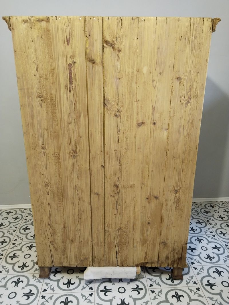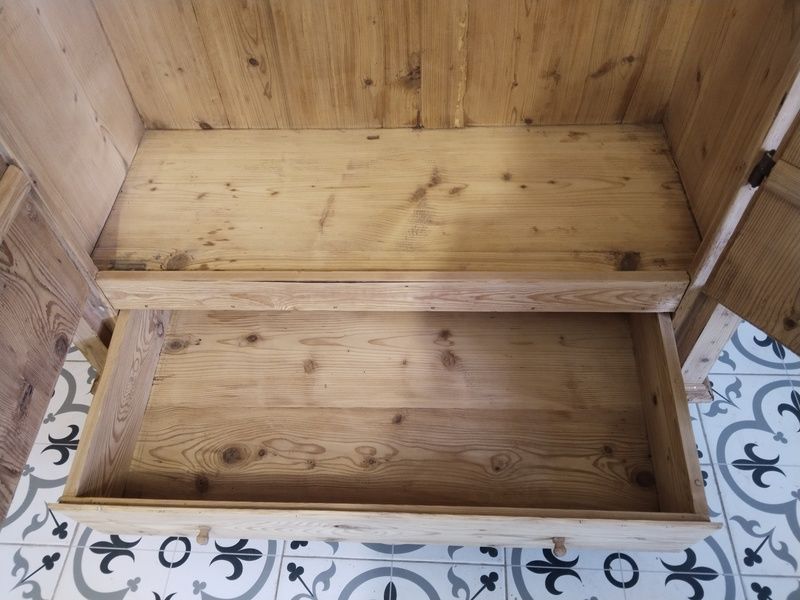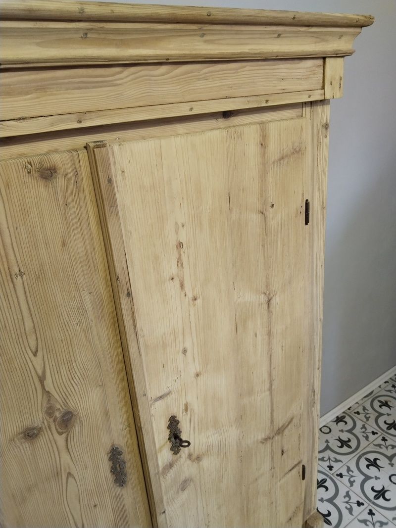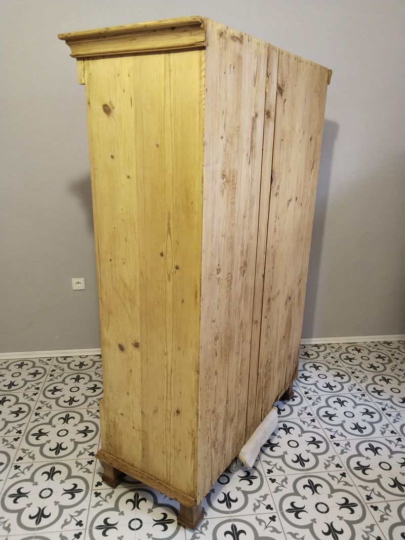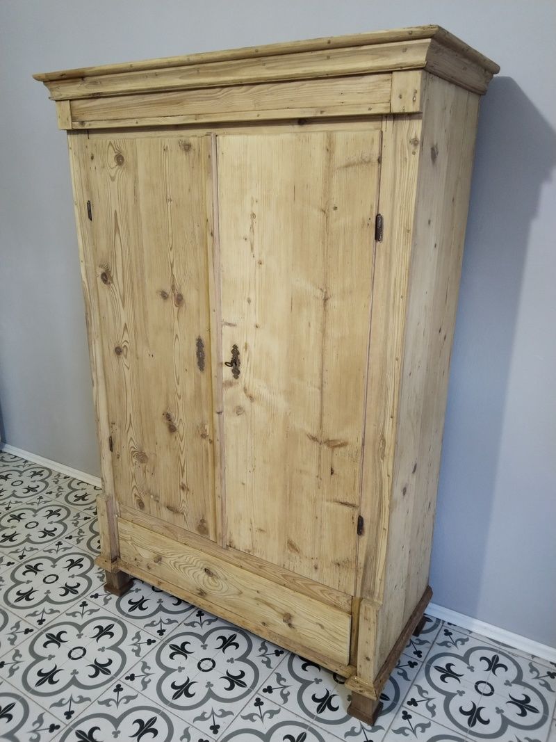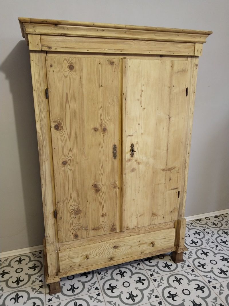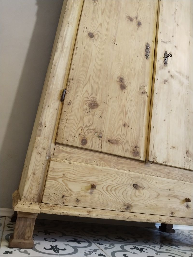 Stará skříň po renovaci . Skříň je olouhovaná , obroušená a zatím bez povrchové úpravy čisté dřevo.