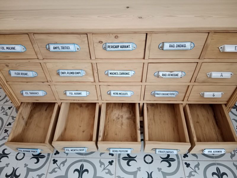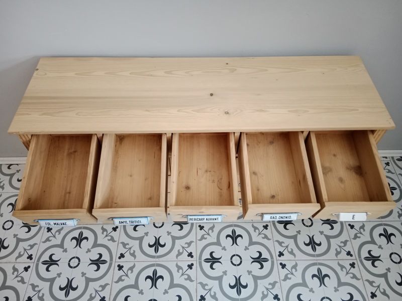 Starý, šuplíkový regál po renovaci. Je olouhovaný, obroušený a zatím bez povrchové úpravy čisté dřevo. Rozměry v. 77 cm, deska nahoře š. 135 cm * h. 40 cm.