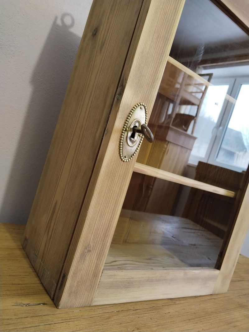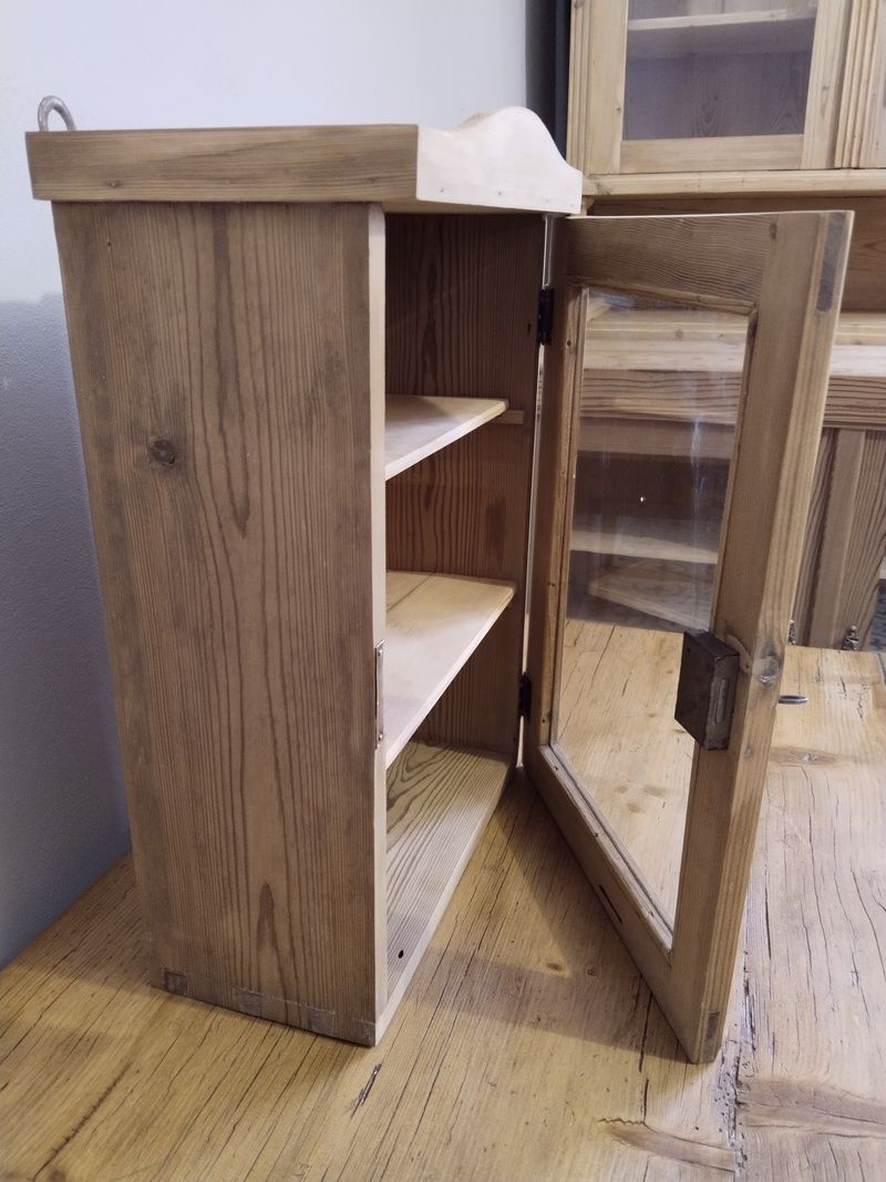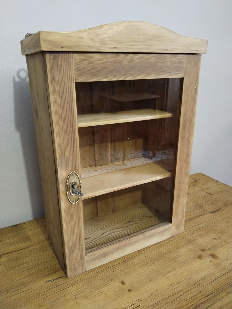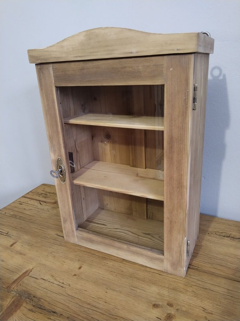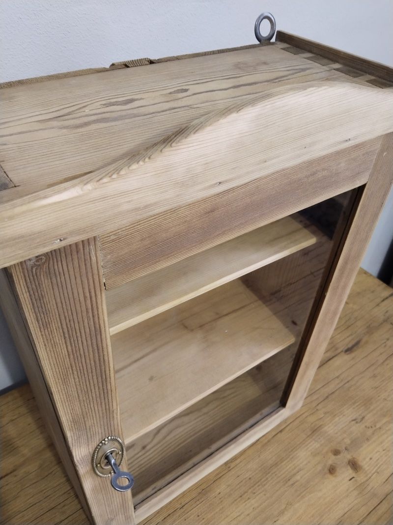 Stará lékárna po renovaci. Olouhovaná, obroušená a zatím bez povrchové úpravy čisté dřevo. Funkční zámek. Rozměry v. 53 cm, š. 36 cm, h. 20 cm.