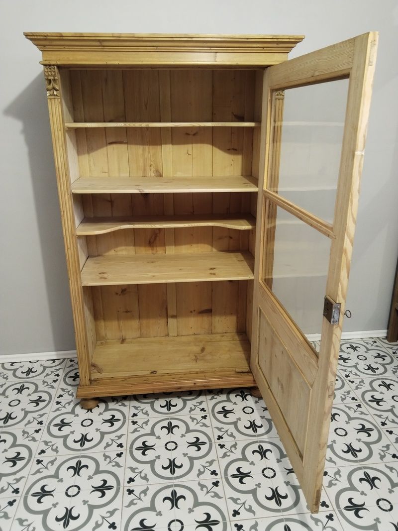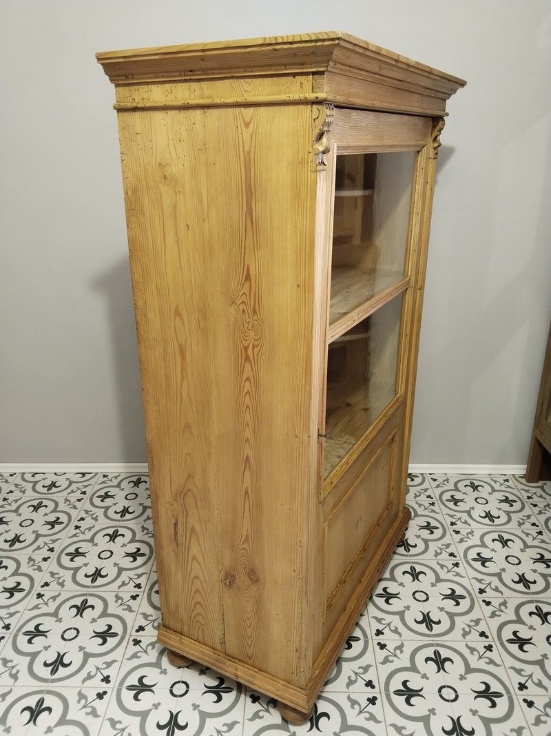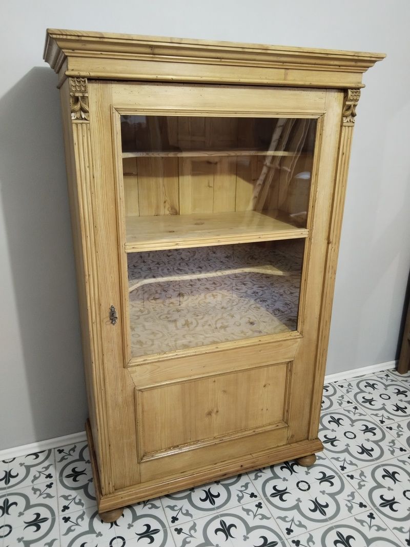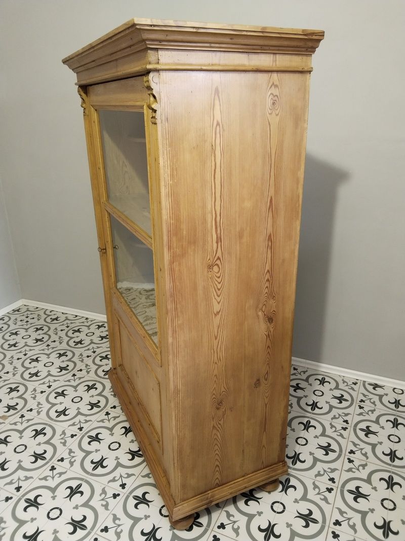 Stará vitrína po renovaci. Je olouhovaná, obroušená a navoskovaná speciálním, ekologickým voskem na starý nábytek. Rozměry v. 170 cm, š. 105 cm, h. 55 cm.