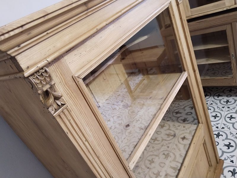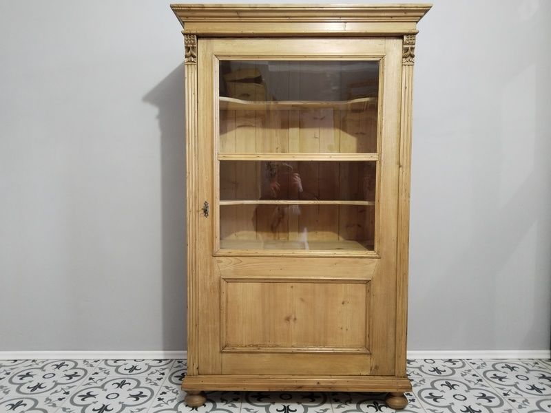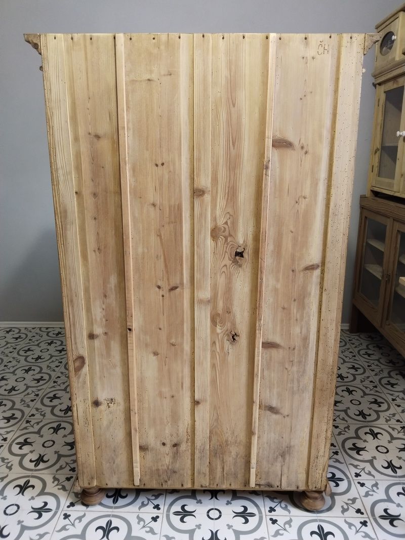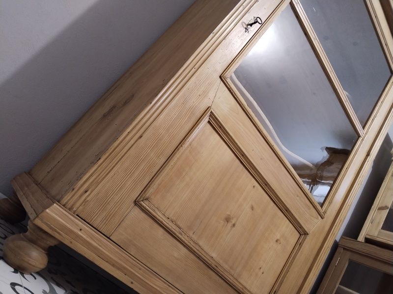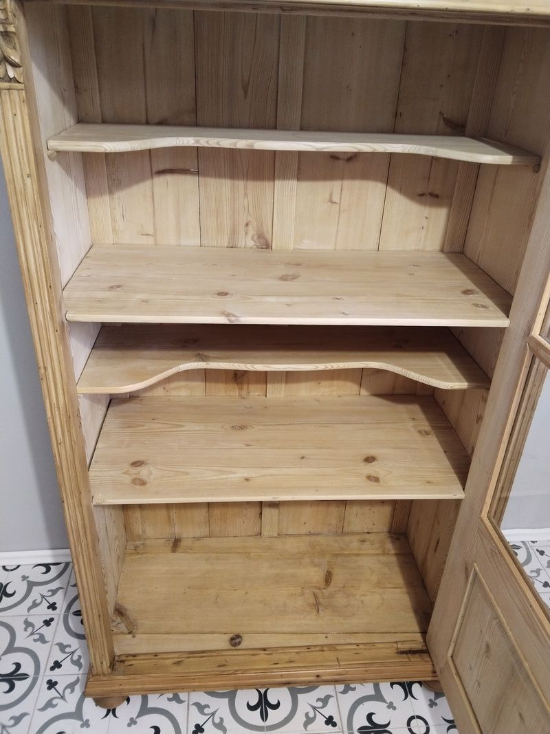 Stará vitrína po renovaci. Je olouhovaná, obroušená a navoskovaná speciálním, ekologickým voskem na starý nábytek. Rozměry v. 170 cm, š. 105 cm, h. 55 cm.