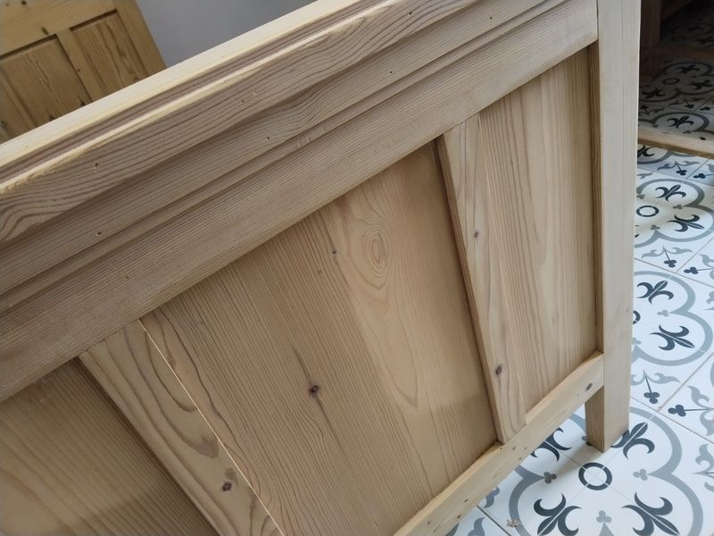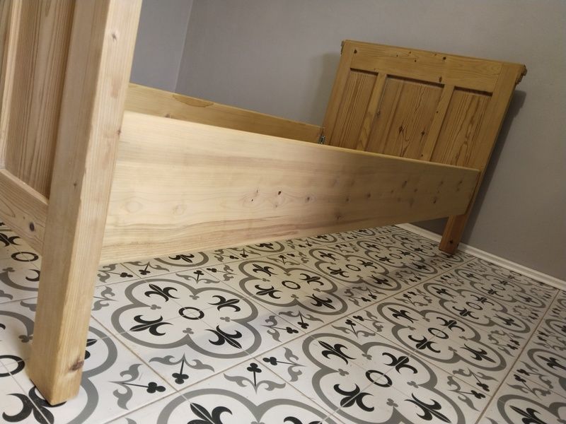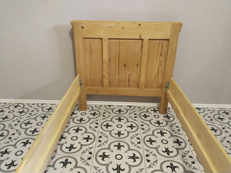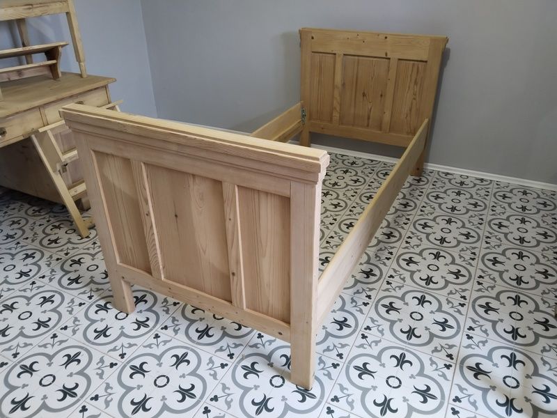 Stará postel po renovaci. Je olouhovaná, obroušená a zatím bez povrchové úpravy čisté dřevo. Rozměr na matraci 200 * 90 cm.