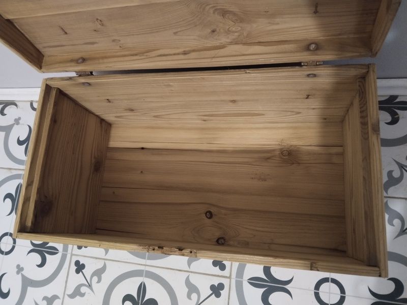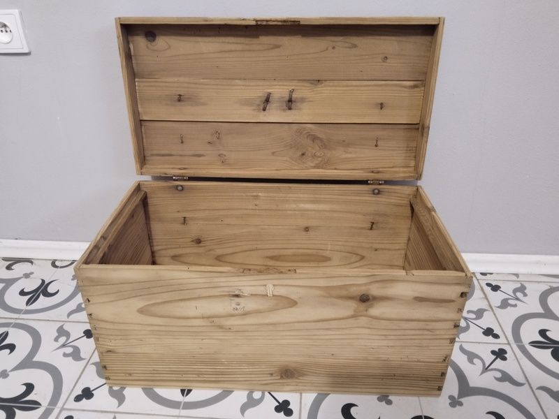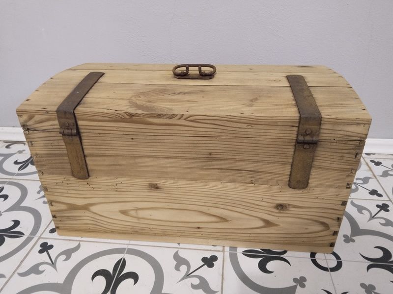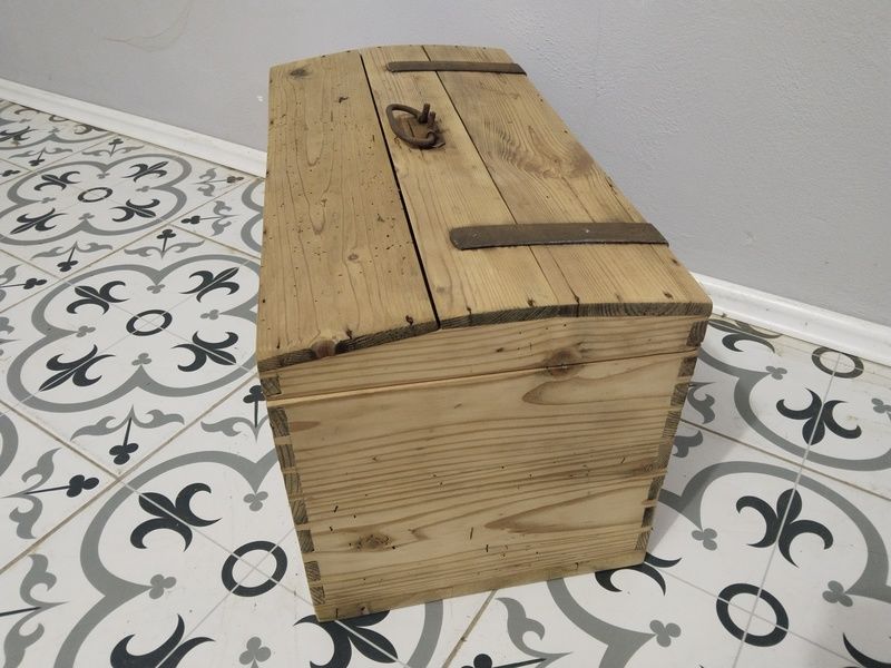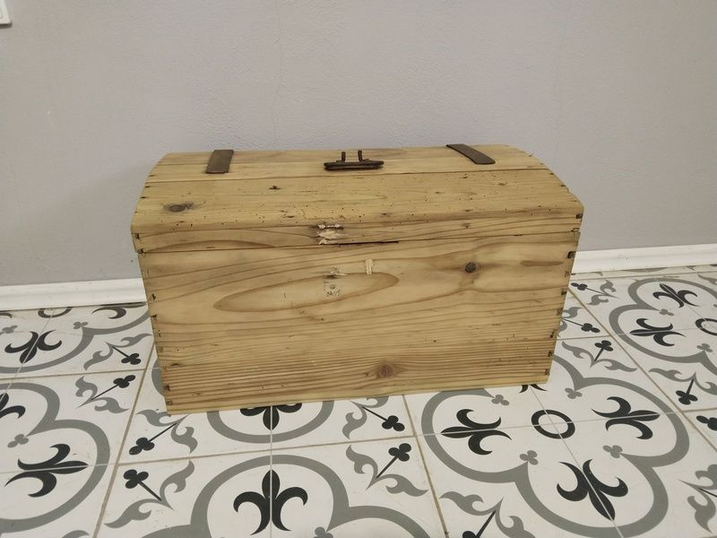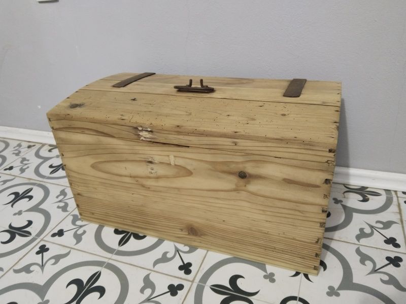 Starý kufřík po renovaci. Olouhovaný, obroušený a zatím bez povrchové úpravy čisté dřevo. Rozměry cca 60 * 30 * 30 cm.